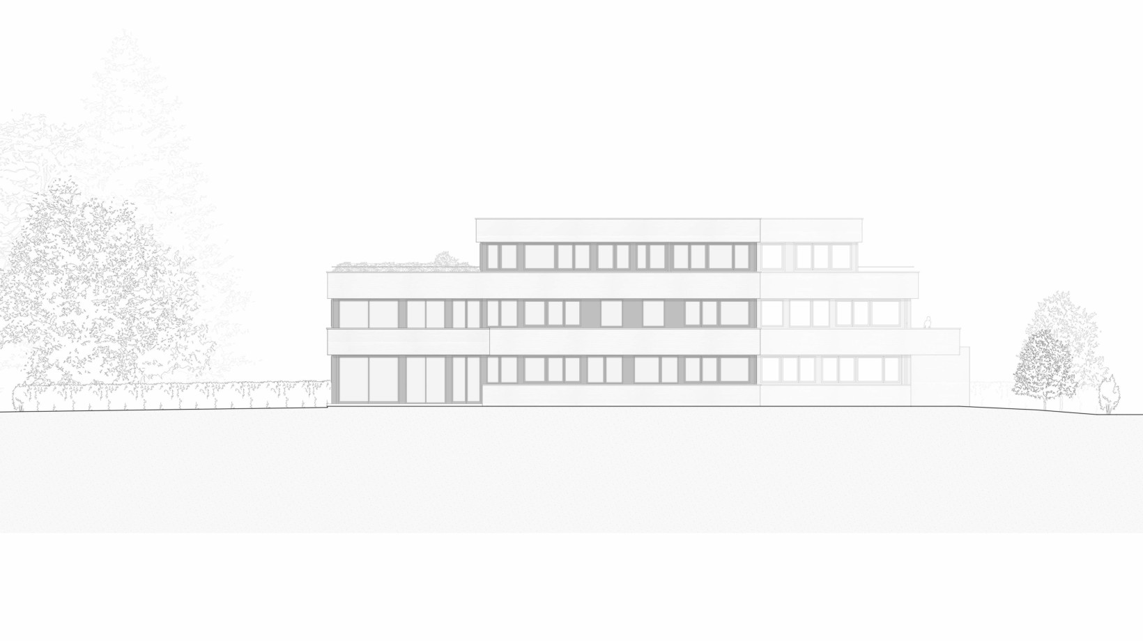 L’étage de l’attique, qui ne représente que 50% de la surface d’étage, participe à différencier les relations avec le voisinage. Le jeu sur le retrait d’attique du côté des villas permet d’organiser la relation morphologique du projet avec l’existant.